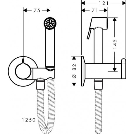 Hansgrohe > Armatura / baterie > Baterie bidetowe > ShowerCollection > Bidetowa główka prysznicowa Axor Bidette 1jet z mieszaczem, uchwytem i wężem prysznicowym 1.25 m, okrągła - chrom