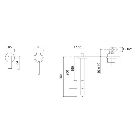 Giulini G. > Armatura / baterie > Baterie umywalkowe ścienne > Futuro > Bateria umywalkowa Giulini Giovanni Futuro dwuotworowa, podtynkowa, długość wylewki 20 cm - czarny mat