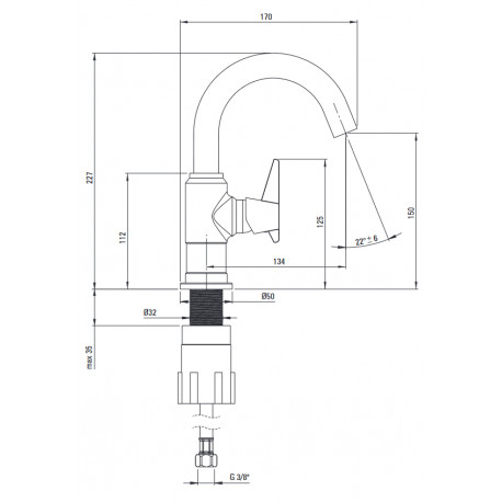 - zasięg wylewki bateryjnej [mm]: 134