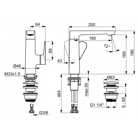 - Bateria umywalkowa z bocznym uchwytem mieszacza