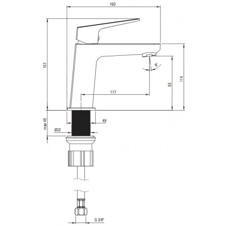 - Zasięg wylewki [mm]: 117