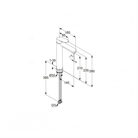 Kludi > Armatura / baterie > Baterie umywalkowe stojące > X1 > Bateria umywalkowa Kludi X1, stojąca 210 mm, jednouchwytowa - chrom