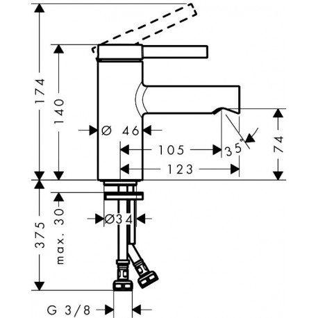 - wysokość wylewki: 74 mm