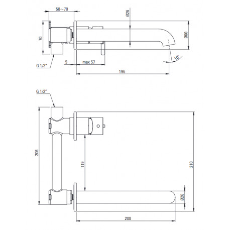 - zasięg wylewki bateryjnej [mm]: 223