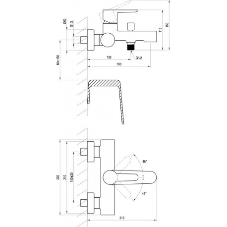 Ravak > Armatura / baterie > Baterie wannowe natynkowe > Puri > Bateria wannowa Ravak Puri, naścienna, z przełącznikiem - chrom
