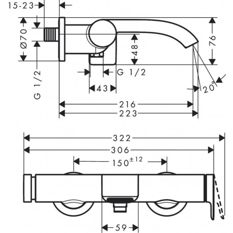 Hansgrohe > Armatura / baterie > Baterie wannowe natynkowe > Vivenis > Bateria wannowa Hansgrohe Vivenis, natynkowa, jednouchwytowa, 2 wyjścia wody, chrom