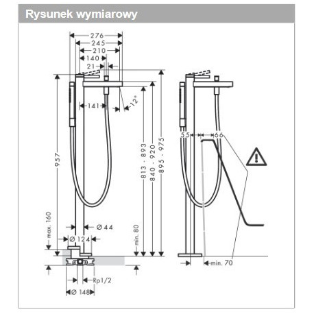 Zestaw podstawowy Hansgrohe/Axor do baterii stojącej przy wannie, montaż w podłodze, DN 15