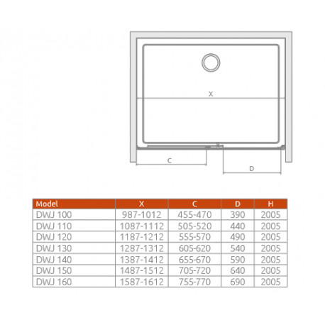 - Szerokość wnęki (X): 1487-1512 mm