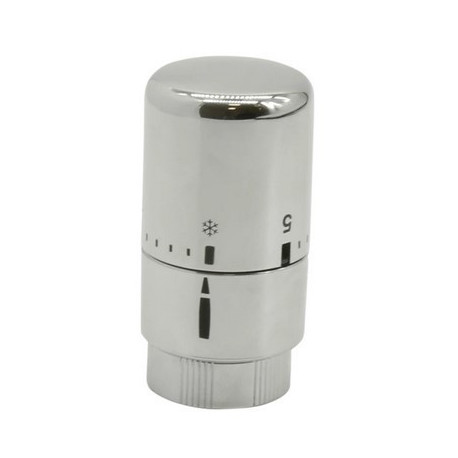 Głowica termostatyczna z cieczą, wykończenie chromowane.