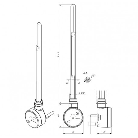 Terma > Grzałki, Zawory, Głowice > Grzałki > Grzałki > Grzałka elektryczna Terma MOA WiFi z elementem grzejnym, moc 600 W - biała