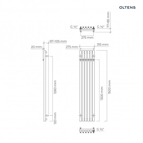 Oltens > Grzejniki > Grzejniki dekoracyjne > Stang > Grzejnik dekoracyjny Oltens Stang 150x31,5 cm - biały