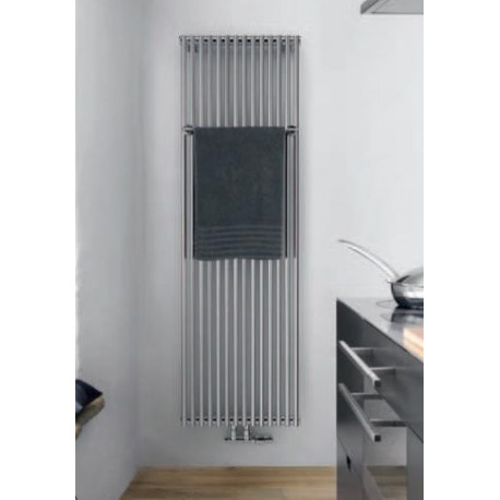 Grzejnik łazienkowy Zehnder Kleo Bar Chrom z uchwytem na ręczniki zbudowany jest z wertykalnie ułożonych okrągłych rurek o średnicy ø 20 mm oraz horyzontalnie ułożonych okrągłych kolektorów zbiorczych o średnicy ø 38 mm.