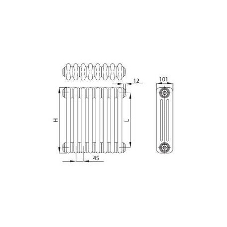 Typ grzejnika: z potrójnym rzędem rurek (trzykolumnowy).
