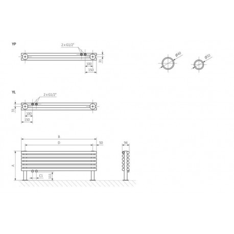 Terma > Grzejniki > Tune HSD > Tune HSD > Grzejnik Terma Tune HSD (wolnostojący) 39x140 cm - RAL i Kolory Specjalne