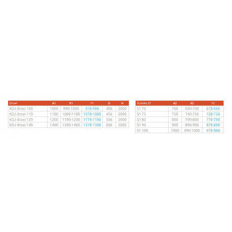 Składając zamówienie należy podać 2 numery artykułów: ścianka + drzwi.