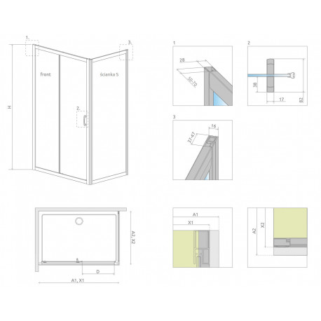 Składając zamówienie, należy podać 2 numery artykułów: drzwi kabiny oraz ścianki bocznej S.