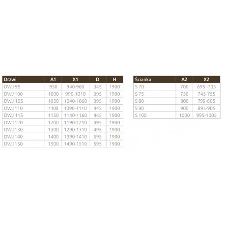 Składając zamówienie, należy podać 2 numery artykułów: drzwi kabiny oraz ścianki bocznej S.