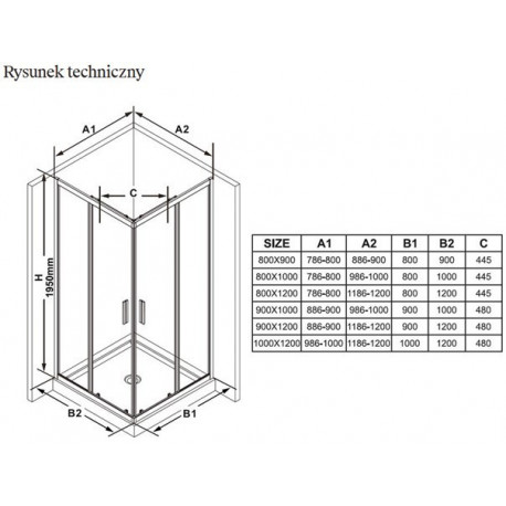 - Wymiary montażowe: 986-1000x986-1000x1950