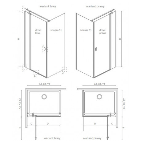 Składając zamówienie należy podać 2 numery artykułów: drzwi kabiny oraz ścianki bocznej S1