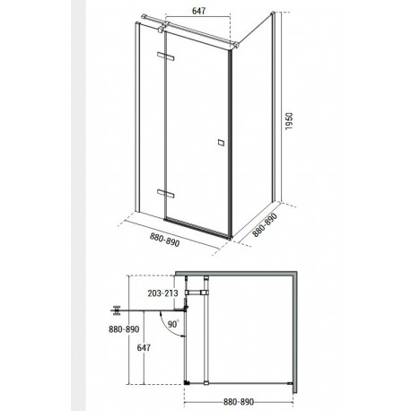 - Zawiasy unoszące drzwi, zlicowane z taflą szkła