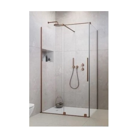Radaway > Kabiny prysznicowe > Kabiny kwadratowe / prostokątne > Furo > Front kabiny Radaway Furo KDJ 140, wersja lewa, ze ścianką, 140x200cm, drzwi przesuwne, szkło przejrzyste, profil miedź