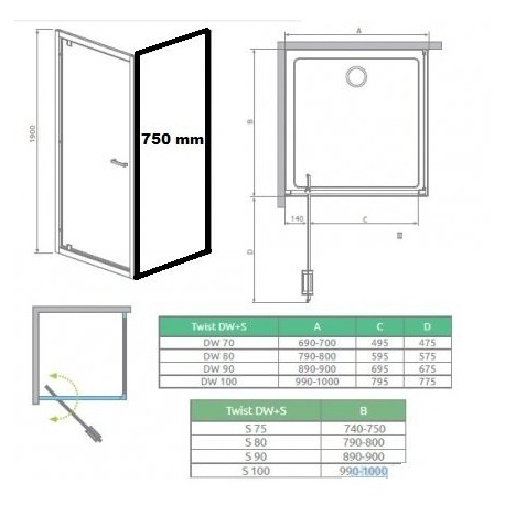 Radaway > Kabiny prysznicowe > Kabiny kwadratowe / prostokątne > Ścianki boczne > Ścianka boczna Radaway Twist 75 cm