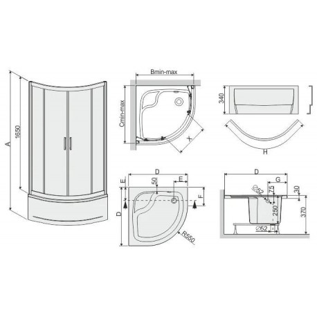 * - zakres regulacji przy montażu brodzików bez obudów Sanplast.