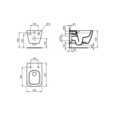 Ideal Standard > Ceramika sanitarna > Miski wiszące > Ceramika sanitarna > Miska WC Ideal Standard i.life B Rimless, 54x35,5cm wisząca bezrantowa biała + deska Ideal Standard i.life B, wolnoopadająca