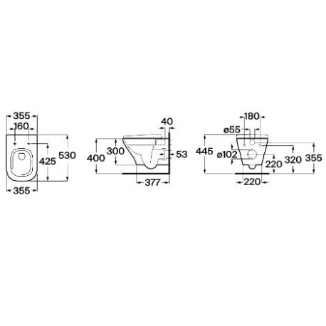 Roca > Ceramika sanitarna > Miski wiszące > Optica > Miska WC Roca Optica 35,5x53 cm Rimless Vortex, wisząca, bezkołnierzowa - biała
