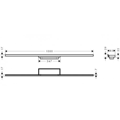 Hansgrohe > Systemy odpływowe > Odpływy podłogowe, podpłytkowe > Elementy odpływowe > Element zewnętrzny odpływu liniowego Hansgrohe RainDrain Minimalistic 1000, montaż przyścienny