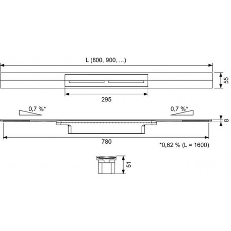 Tece > Systemy odpływowe > Odpływy podłogowe, podpłytkowe > Profile prysznicowe > Profil prysznicowy TECEdrainprofile, stal szczotkowana, 900 mm