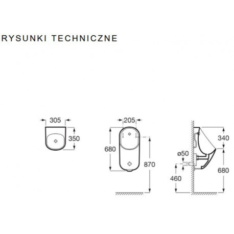 - W komplecie: zestaw montażowy do ściany, przyłącze zasilające z wężykami wody (wymagane standardowe przyłącze wody 1/2''), wandaloodporna osłona odpływu, syfon, elektrozawór.