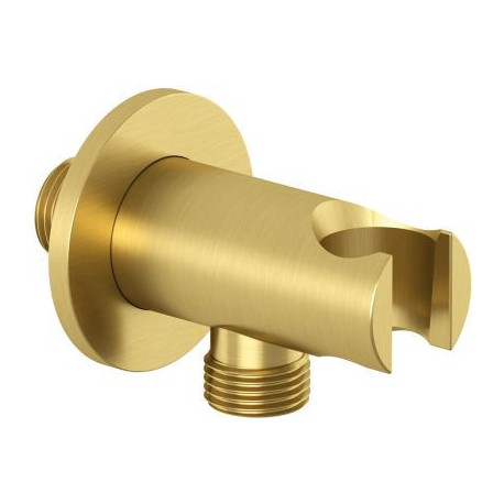 Kludi > Armatura / baterie > Pojedyncze elementy natryskowe |słuchawki,węże,uchwyty| > Elementy natryskowe Kludi > Przyłącze kątowe Kludi A-QA do węża natryskowego, ze ściennym uchwytem natryskowym - złoty szczotkowany