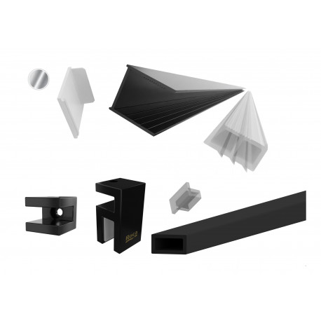 Zestaw montażowy DF zawiera: profil 2000 mm, wspornik 2000 mm do samodzielnego przycięcia, mocowania wspornika, elementy kompatybilne do grubości ścianki 6 i 8mm.