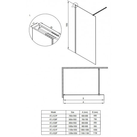 Deante > Kabiny prysznicowe > Ścianki natryskowe wolnostojące (typu Walk-in) > Prizma > Ścianka prysznicowa Deante Prozma walk-in 110x195 cm - szkło transparentne, profil czarny met