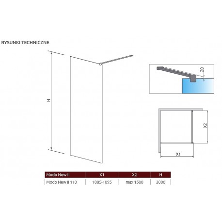 Ścianka Walk-In Radaway Modo New II 110, 108.5-109.5x200cm, chrom, szkło przejrzyste
