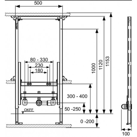 Tece > Stelaże podtynkowe > Spłuczki podtynkowe do scianek gipsowych > Teceprofil > Stelaż podtynkowy TECEprofil do bidetu H112cm