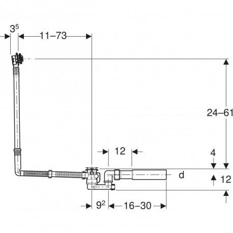 Geberit > Systemy odpływowe > Syfony, elementy odpływowe do wanien > Odpływy wannowe > Zestaw odpływowo-przelewowy Geberit do wanien niestandardowych, d52, długość 73 cm