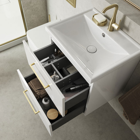 Defra > Meble łazienkowe > Szafki pod umywalkę > Faro > Szafka podumywalkowa Defra Faro D60 z dwiema szufladami, szerokość 60 cm - lakier biały połysk