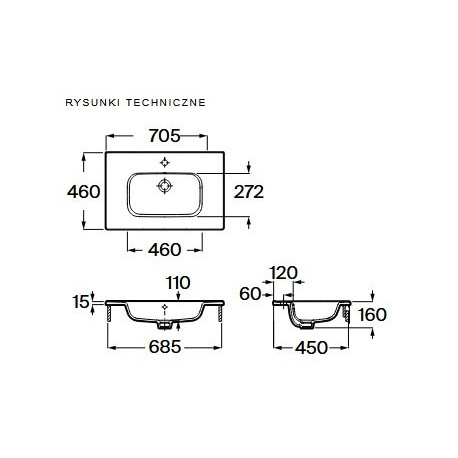 Roca > Ceramika sanitarna > Umywalki meblowe > Umywalki > Umywalka meblowa Roca Vistoria-N 70 x 46 cm (do kompletacji z kolekcją Alpine)