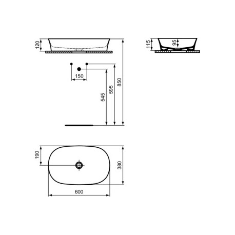 Ideal Standard > Ceramika sanitarna > Umywalki stawiane na blat > Ipalyss > Umywalka nablatowa owalna z cienkimi ściankami 60x38cm Ideal Standard Ipalyss , czarny mat