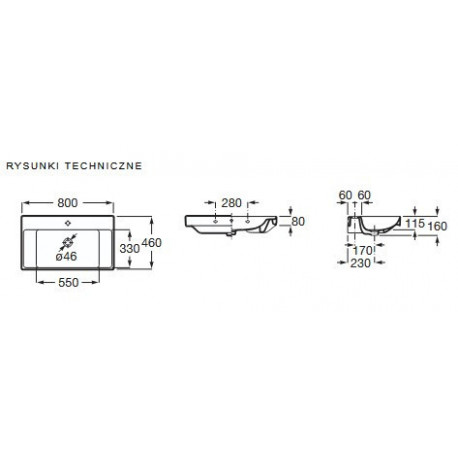 Roca > Ceramika sanitarna > Umywalki stawiane na blat > Ona > Umywalka ścienna prostokątna Roca Ona Fineceramic, 80x46cm, z przelewem - biała