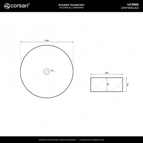 Corsan > Ceramika sanitarna > Umywalki stawiane na blat > Umywalki nablatowe > Umywalka nablatowa Corsan Lugo okrągła 35,5x12 cm z korkiem klik-klak białym