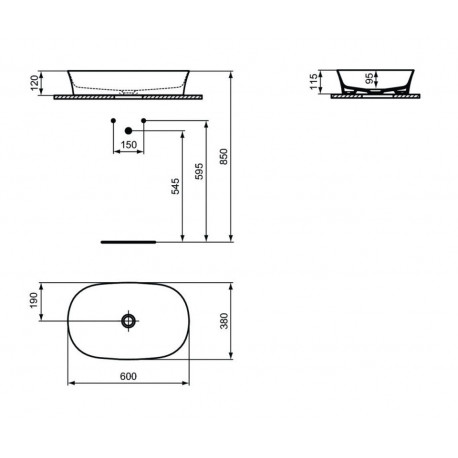 Ideal Standard > Ceramika sanitarna > Umywalki stawiane na blat > Ipalyss > Umywalka nablatowa Ideal Standard Ipalyss owalna z cienkimi ściankami 60x38cm - biała