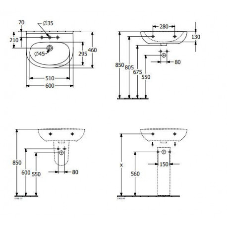 Villeroy & Boch > Ceramika sanitarna > Umywalki wiszące > O.Novo > Umywalka Villeroy & Boch O.Novo wisząca 60x46 cm, z otworem na baterię, z przelewem, z powłoką CeramicPlus - biała