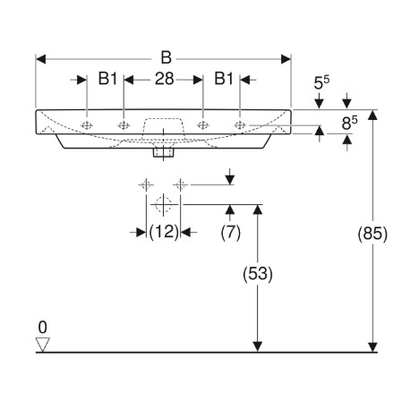 Geberit > Ceramika sanitarna > Umywalki wiszące > Smyle Square > Geberit Smyle Square Umywalka, 60cm, z przelewem, z otworem na baterię, z powłoką KeraTect - biała