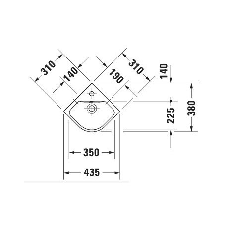 Duravit > Ceramika sanitarna > Umywalki wiszące > ME by Starck > Umywalka narożna Duravit ME by Starck 44x38 cm, z przelewem, z otworem na baterię, z powłoką z WonderGliss - biała