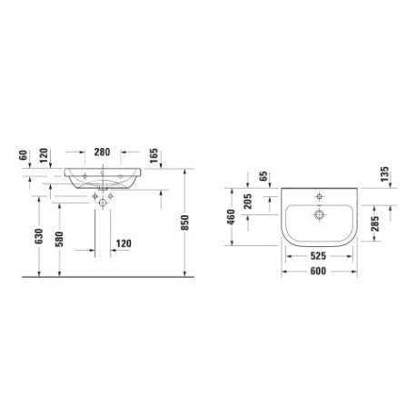 Duravit > Ceramika sanitarna > Umywalki wiszące > D-Code > Umywalka wisząca Duravit D-Code 60x46 cm, z otworem na baterię, z przelewem, tył glazurowany - biała