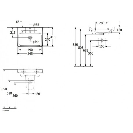 Villeroy & Boch > Ceramika sanitarna > Umywalki wiszące > Architectura > Umywalka wisząca Villeroy & Boch Architectura 55x42 cm, z przelewem, z otworem na baterię - biała