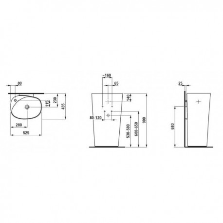 Laufen > Ceramika sanitarna > Umywalki wolnostojące > Palomba > Monolityczna umywalka wolnostojąca Laufen Palomba przyścienna ze zintegrowanym postumentem z 1 otworem 525 x 435 x 900 mm - biała